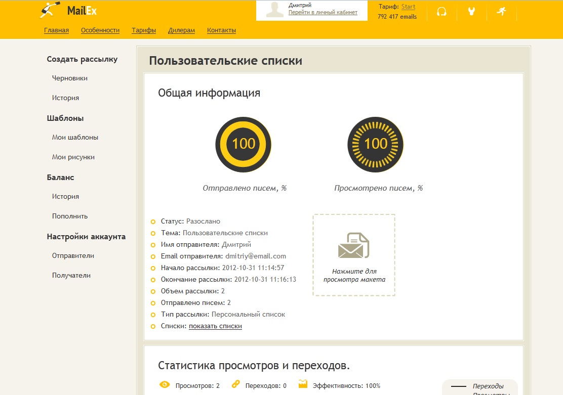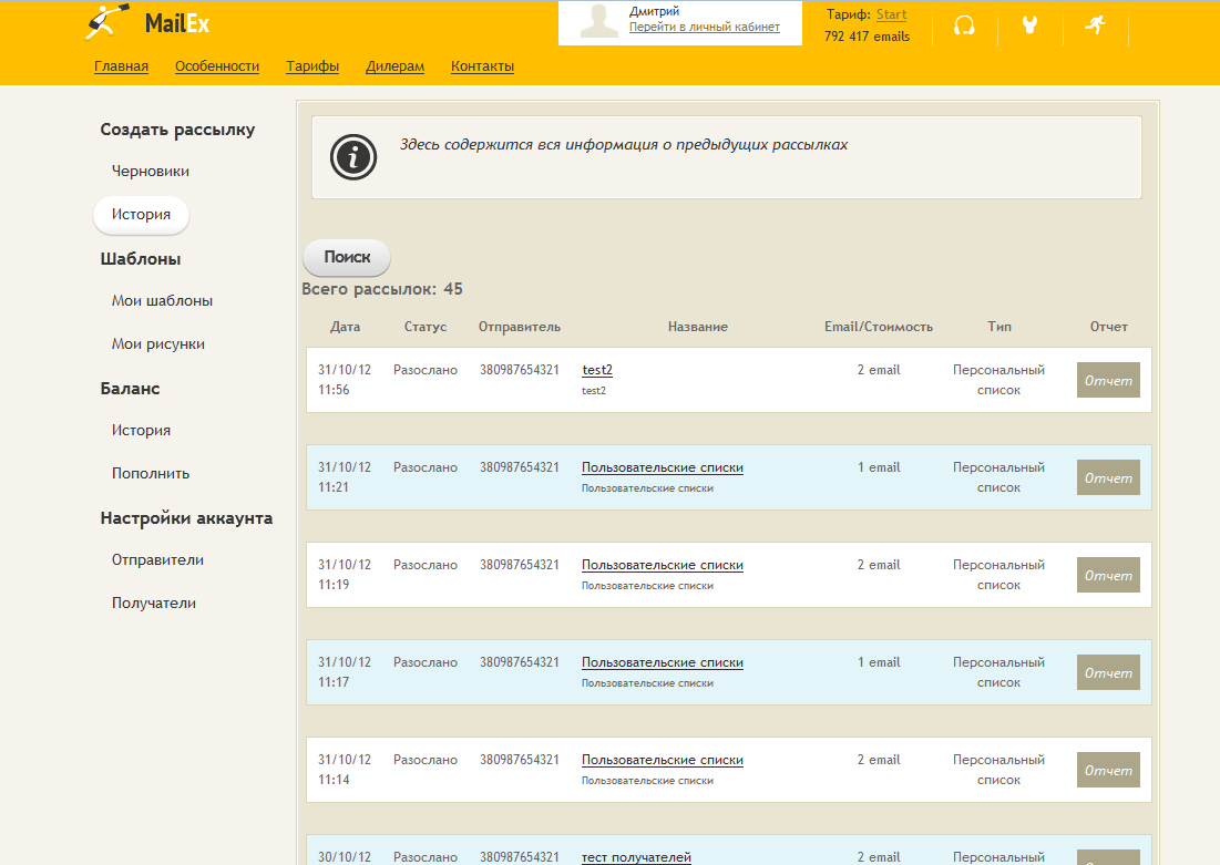 - - Детальные отчеты и статистика по всем совершенным рассылкам, в режиме online;